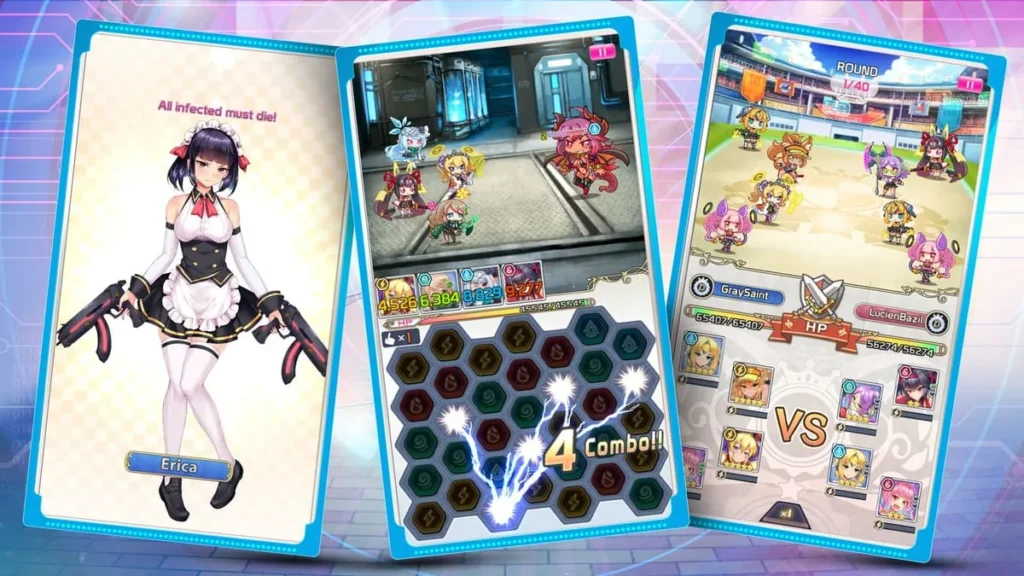- Turn-Based Combat: While you’re solving the puzzle, your team and the enemy team take turns attacking based on their speed stats. Your characters have powerful special abilities that become available once their Ability Meter is full. Timing these abilities—a well-placed stun, a defense buff before a big enemy attack, or a massive nuke—is crucial for victory.